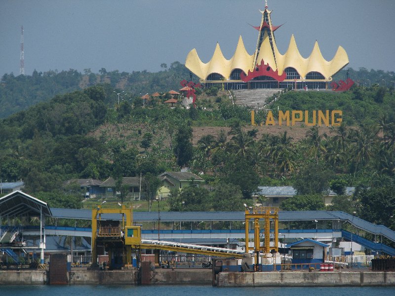 Pertama jika menuju lampung menggunakan transportasi laut anda akan di perlihatkan dengan maskot Kota Lampung yaitu “Siger”.