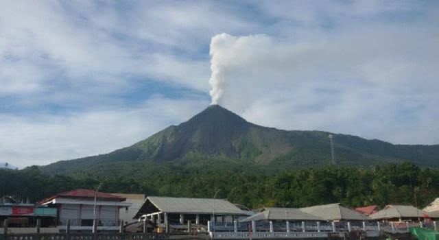INAnews.co.id, Jakarta – Gunung Karangetang di Kepulauan Siau Tagulandang Biaro (Sitaro), Sulawesi Utara, menyemburkan abu vulkanik pada Kamis (21/12/2018).