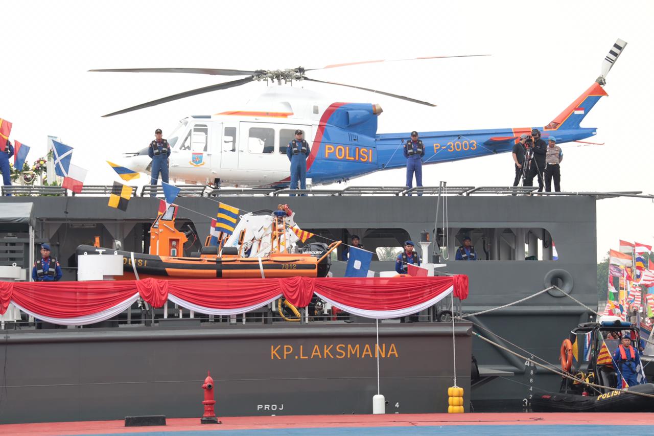Acara dilanjutkan dengan Peresmian 8 Kapal Polisi Patroli, 15 Kapal Pemburu Cepat dan 1 Helikopter oleh Kapolri, peresmian dilaksanakan secara simbolis dengan pengguntingan pita dan pecah kendi. Selesai peresmian Kapolri didampingi dengan pejabat lainnya melaksanakan peninjauan Kapal Laksmana – 7012 dan Kapal Polisi Yudhistira – 8003 serta Helikopter Bell 412 EP.