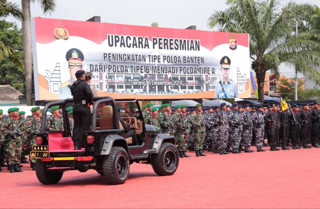 INAnews.co.id , Banten – Polda Banten, Kapolri Jenderal Polisi Muhamad Tito Karnavian meresmikan kenaikan tipologi Polda Banten dari tipe B menjadi tipe A, bertempat di Mapolda Banten Rabu (5/12/2018) pukul 08.00 WIB