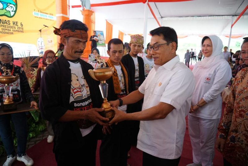 Moeldoko saat memberikan penghargaan kepada pemenang lomba kontes di acara Silatnas Ke 6 Himpunan Peternak Domba dan Kambing di Batu Malang (09-12-2018)