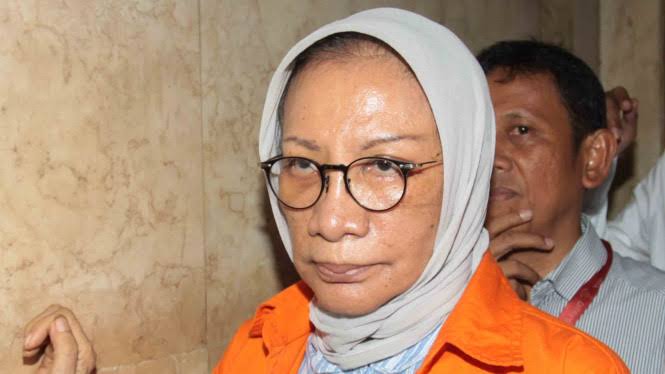 Ada dua unit voorijder dan lima mobil yang ikut dalam iring-iringan tersebut. Ratna terlihat menggunakan rompi tahanan yang berwarna oranye.