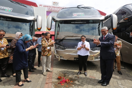 Seremoni pelepasan dilaksanakan di tengah pameran bus terbesar di Asia Tenggara, Busworld South East Asia di JIExpo Kemayoran (21/3/2019)