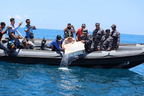 Pelepasliaran dilakukan Kementerian Kelautan dan Perikanan (KKP) melalui Badan Karantina Ikan, Pengendalian Mutu dan Keamanan Hasil Perikanan (BKIPM) di perairan Kepulauan Riau.