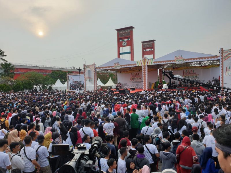 INAnews.co.id, Palembang—Sejak pagi suasana tengah kota Palembang tepatnya di kawasan Jembatan Ampera, Bundaran Masjid Agung dan Pelataran Parkir 16 Ilir BKB dipadati masyarakat yang mengikuti acara South Sumatera Milenial Road to Safety Festival yang dihadiri Presiden RI Joko Widodo, Sabtu (9/3).