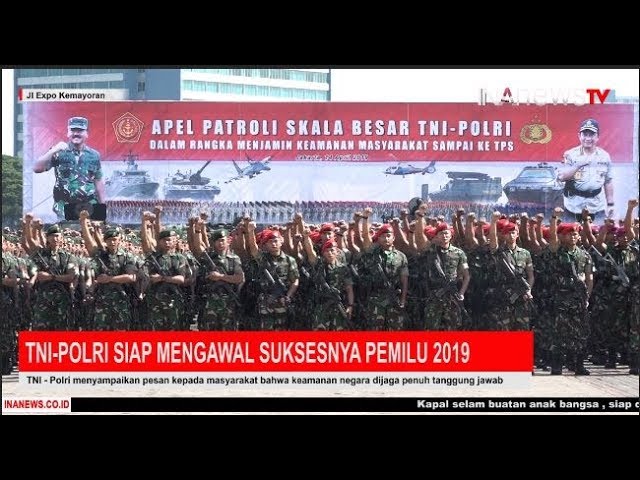INAnews Tv, Jakarta – Memasuki masa tenang (14-16 April 2019) dalam tahapan Pemilu 2019, Pandam Jaya Mayjend TNI Eko Margiono bersama Kapolda Metro Jaya Irjen. Pol. Drs. Gatot Eddy Pramono, M.Si. kembali menegaskan, TNI dan Polri netral dalam Pemilihan Umum (Pemilu), 17 April 2019. Penegasan perwakilan Kepolisian Republik Indonesia dan Tentara Nasional Indonesia tersebut disampaikan pada acara Apel Patroli skala besar TNI-Polri dalam rangka menjamin keamanan masyarakat sampai ke TPS di JI Expo Kemayoran, Minggu (14/04/2019).