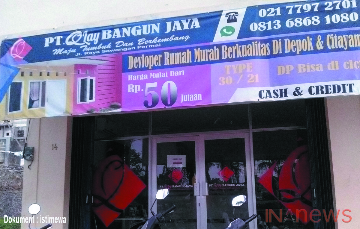 INAnews.co.id, Depok –  Kantor pengembang PT. Q-Lay Property yang rencana menggarap perumahan murah  di kavling Garuda Residence Jl. Cempaka No. 71 Pasir Putih, Kelurahan. Pasir Putih, Kecamatan. Sawangan, Depok.Didatangi sejumlah konsumennya untuk mengembalikan uang pembayaran yang telah di setor.