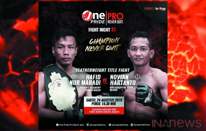 INAnews.co.id, Jakarta – One Pride Pro Never Quit, Promotor MMA terbesar di Indonesia dengan lebih dari 200 laga per tahun serta menghadirkan 300 petarung yang berasal dari 50 klub yang tersebar di Indonesia, kembali di gelar di Tennis Indoor Senayan pada 24 Agustus 2019.