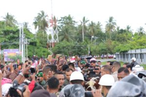Pukul 09.50 WIT Presiden Jokowi melakukan pertemuan dan tanya jawab dengan masyarakat di lapangan Irai.