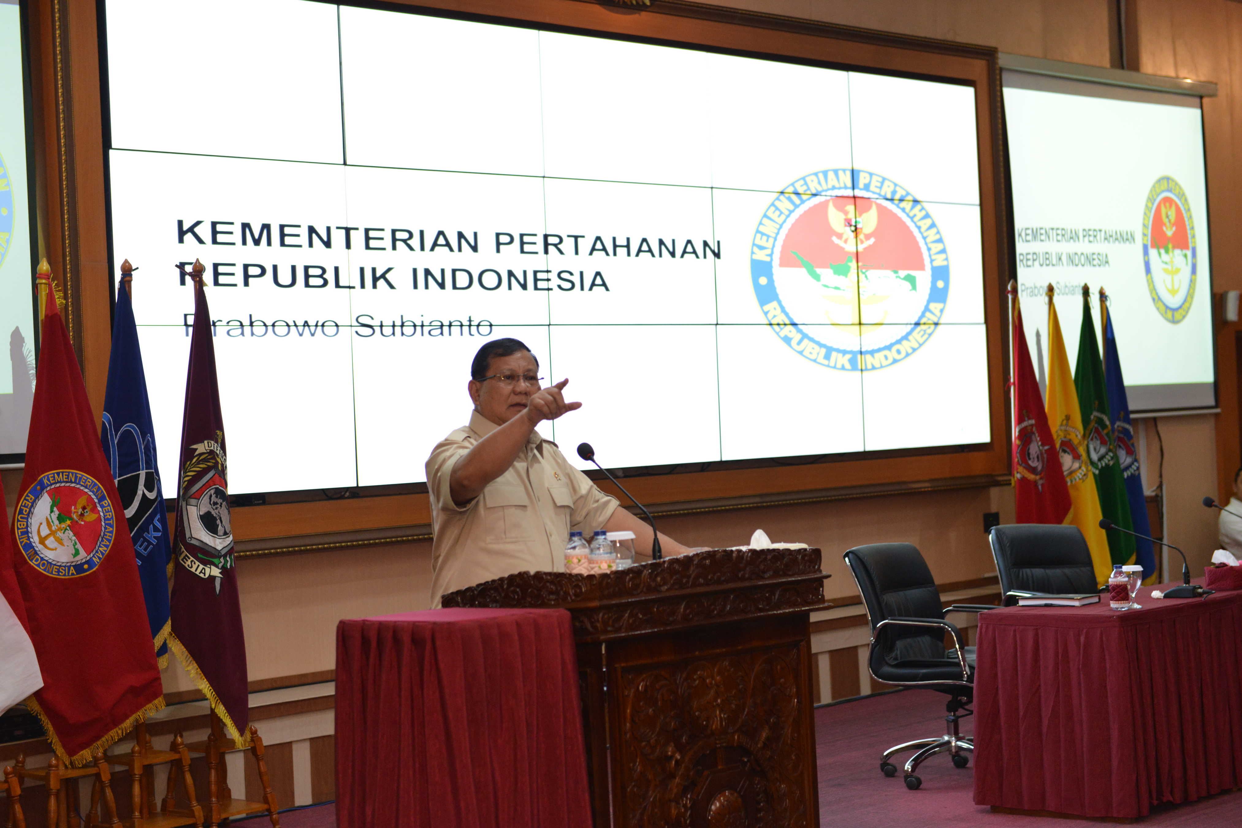 INAnews.co.id, Bogor – Menteri Pertahanan (Menhan) Prabowo Subianto memberikan pengarahan kepada pejabat dan staf di jajaran Universitas Pertahanan (Unhan) Kampus Bela Negara, Senin (28/10/2019), di Auditorium Unhan, Sentul, Bogor, Jawa Barat.