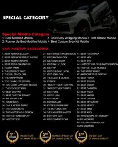 Ia memaparkan, lahan parkir yang luas sangat mendukung kelancaran acara nantinya akan diisi dengan berbagai acara mulai dari panggung hiburan, kontes modifikasi lomba akan ada dua kategori terbagi menjadi 64 kelas dan memilih 3 juara The Best car.