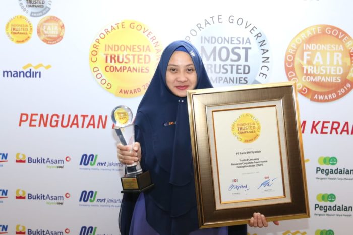 INAnews.co.id, Jakarta – BNI Syariah raih penghargaan Trusted based on Corporate Governance Perception Index (CGPI) dalam ajang Indonesia Most Trusted Companies Award 2019 di Hotel Shangri-La, Jakarta, Rabu (11/12).