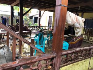 Diantara rumah warga yang terkena genangan air bercampur lumpur tersebut adalah rumah dari keluarga Lumempouw – Salindeho.