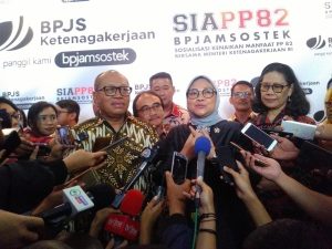 INAnews.co.id, Jakarta  –  Menteri Ketenagakerjaan Ida Fauziyah  bersama Badan Penyelenggara Jaminan Sosial (BPJS) Ketenagakerjaan atau BP Jamsostek melakukan sosialisasi peningkatan manfaat program Jaminan Kecelakaan Kerja (JKK) dan Jaminan Kematian (JKM) kepada asosiasi dan pimpinan perusahaan-perusahaan yang hadir  di Hotel Bidakara, Jalan Gatot Subroto, Jakarta Selatan, Selasa, 14 Januari 2020.