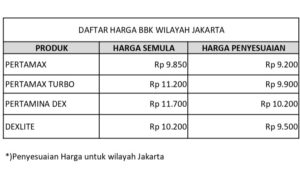 “Penyesuaian harga BBM Umum merupakan aksi korporasi yang mengacu pada ketentuan yang berlaku yang ditetapkan oleh pemerintah. Kami telah berkoordinasi dengan instansi terkait dan memastikan pelayanan kepada masyarakat terus berjalan dengan baik, terutama pelanggan setia produk-produk unggulan Pertamina,” ujar Fajriyah.