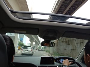 SUV seharga Rp 670 juta OTR di lengkapi Panoramic Sunroof ini membuat pengemudi bisa menikmati pemandangan dan situasi secara lapang dan luas jalan TB Simatupang dari dalam kabin, dan kami pun merasakan lembutnya jok yang dibalut dengan kulit dengan jok  pengemudi dan jok penumpang depan sudah menggunakan sistem elektronik untuk pengaturannya, sehingga saya  bisa sedemikian rupa untuk mengaturnya saat berkendara.