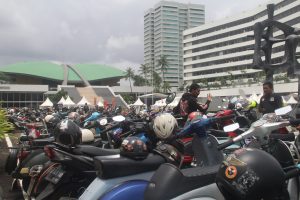 Sebelum mendatangi Gedung parlemen DPR/MPR RI para bikers dari berbagai komunitas berkumpul terlebih dahulu di lapangan parkir Senayan City.