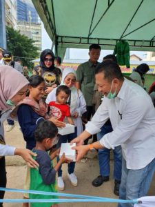 Jakarta – Ketua MPR RI Bambang Soesatyo bersama Gerakan Keadilan Bangun Solidaritas (GERAK BS) dan Garda Ojek Online membagikan masker dan hand sanitizer kepada para pengemudi ojek online dan masyarakat di kawasan Shelter Pangkalan Ojek Online Stasiun Sudirman Dukuh Atas, Menteng, Jakarta. Sebagai langkah antisipasi menangkal virus Corona (Covid-19) dan juga wujud solidaritas kepada para pengemudi ojek online yang sehari-hari berada di jalan raya dan bertemu banyak kalangan masyarakat.