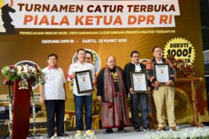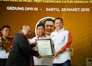 INAnews.co.id, Jakarta – Ketua MPR RI Bambang Soesatyo kembali menyelenggarakan Sosialisasi Empat Pilar MPR RI dengan melibatkan komunitas hobi. Kali ini Sosialisasi Empat Pilar dilakukan melalui Turnamen Catur Master Terbuka, memperebutkan piala Ketua MPR RI. Dengan target peserta mencapai 1.000 orang, turnamen catur tersebut berhasil memecahkan Rekor Museum Dunia Indonesia (MURI).