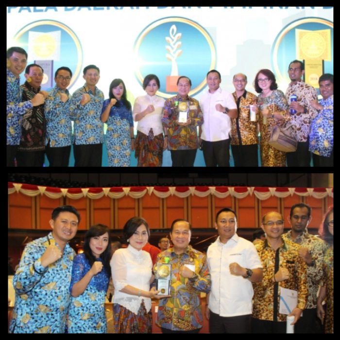 Menerima penghargaan Predikat Sangat Tinggi Laporan Penyelengaraan Pemerintah Daerah (LPPD), diterima Wawali Maurits Mantiri oleh Gubernur Olly Dondokambey.