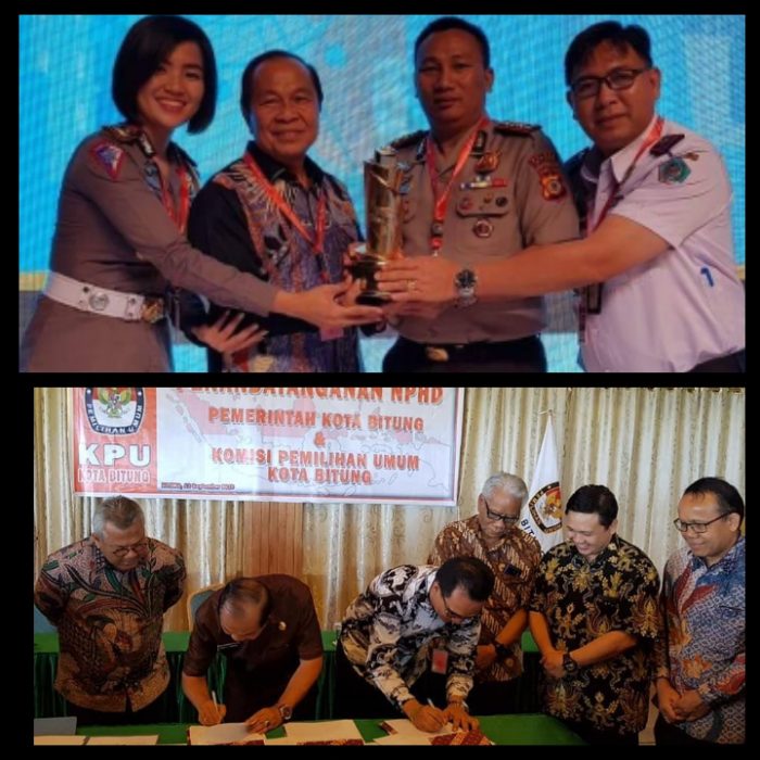 Meraih Penghargaan Anugerah Paritrana atas pemberian Tali Kasih kepada pekerja informal Kota Bitung. Penghargaan WTN 2019, bersama Kapolres Bitung, AKBP Stevanus Tamuntuan SIK MSi.