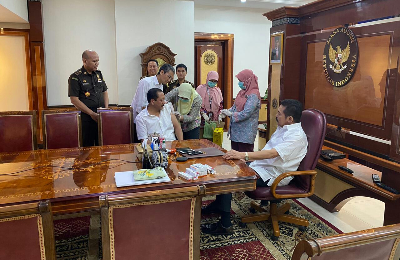 Selain mendapatkkan pencerahan melalui sosialisasi tentang Covid 19, seluruh pegawai di Kejaksaan Agung RI juga diberikan suntikan vaksin anti influinsa yang dilaksanakan oleh Tim Dokter RSU Adhyaksa dan Poliklinik Kejaksaan Agung RI yang secara pro aktif mendatangi seluruh pegawai di ruang kerja masing masing dengan harapan masing masing pegawai mempunyai daya tangkal atau immunitas terhadap penularan virus corona yang sedang mewabah di seluruh dunia, dimana untuk klaster Jakarta, kawasan Kebayoran Baru yang merupakan lokasi Kejaksaan Agung RI berada, sudah termasuk wilayah yang sudah pendemik virus corona yang sedang mewabah.