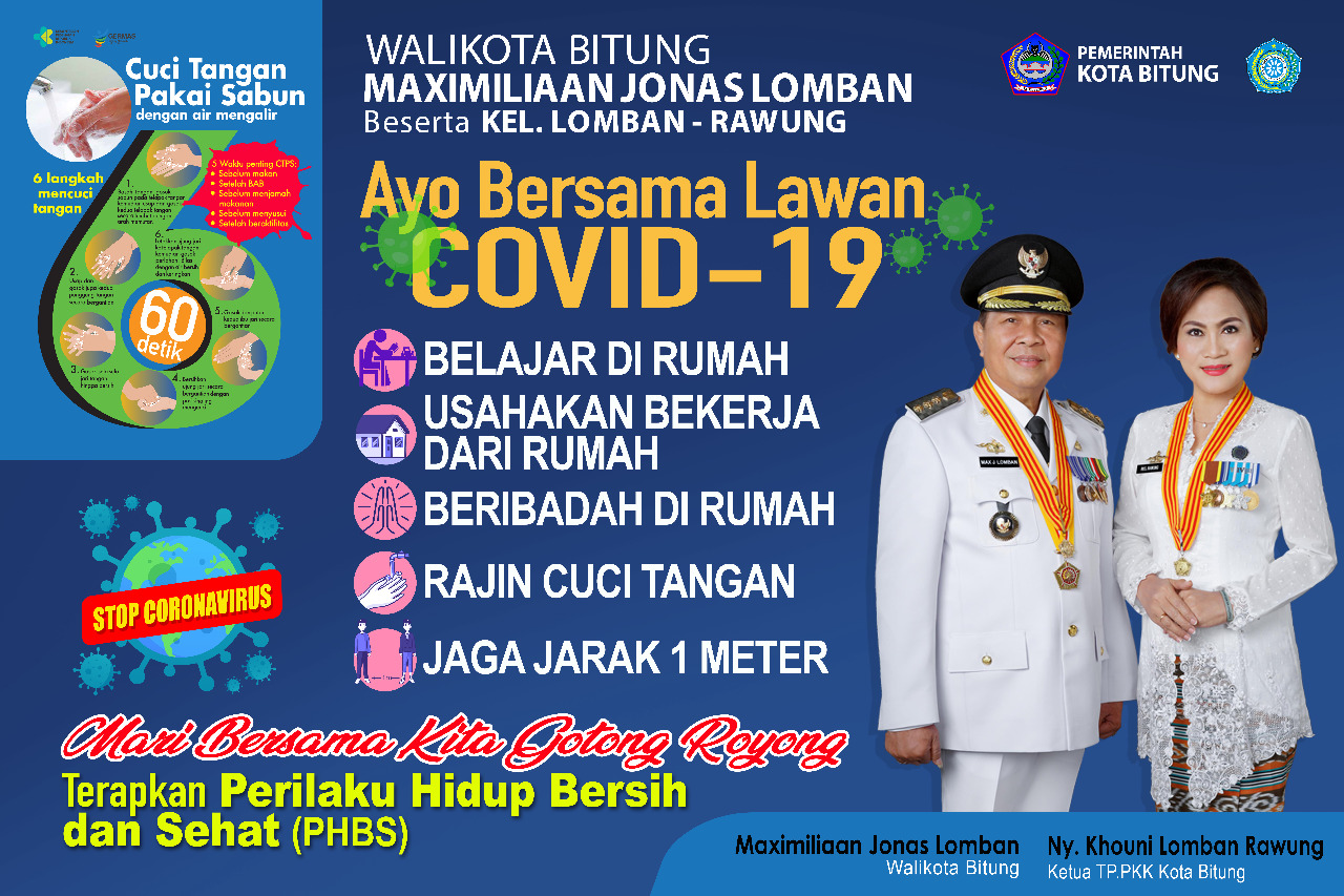 Wali Kota Max J Lomban tak henti-hentinya bepesan kepada seluruh masyarakat Kota Bitung untuk terus menjaga kebersihan diri dan lingkungan dengan rajin mencuci tangan menggunakan sabun dan air mengalir, mengkomsumsi makanan bergizi, rajin berolah raga dan istirahat yang cukup, menjaga jarak aman dalam berkomunikasi minimal 2 meter (Physical Distancing) dan tidak berkumpul (social distancing) dan kalau tidak ada kebutuhan yang mendesak, tetap tinggal di rumah dan terus berdoa memohon perlindungan Tuhan Yang Maha Kuasa. “Semua ini demi kebaikan dan keselamatan kita bersama” ujar Lomban.