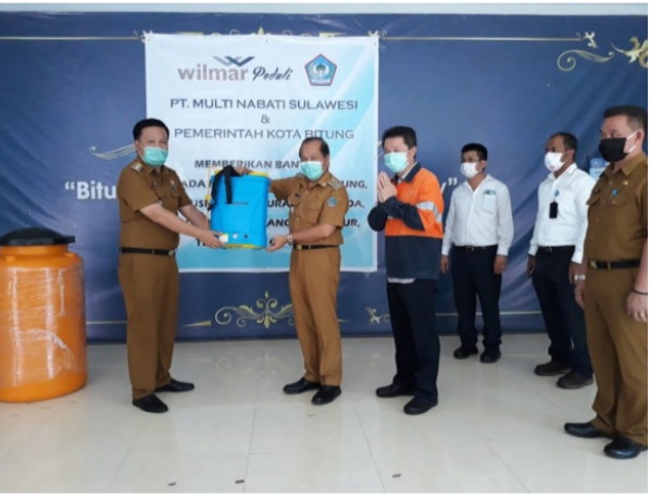 Bertempat di Aula Kantor Kecamatan Madidir MJL menyerahkan bantuan dari PT. Multi Nabati Sulawesi (MNS) secara simbolis kepada masyarakat yang terdampak Covid 19, Selasa 7 April 2020.