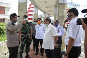 INAnews.co.id Bitung– Pemerintah Kota Bitung terus melakukan pencegahan Covid 19, hari ini pemerintah Kota Bitung dan unsur Forkopimda meninjau pelaksanaan pembatasan akses masuk ke Bitung yang mulai diberlakukan 1 x 24 jam dengan melibatkan unsur TNI/Polri, dinas perbuhungan, Satpol – PP, Dinas kesehatan di gerbang kawasan ekonomi khusus Bitung, Rabu 8 April 2020.