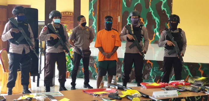 Sebanyak 1 (satu) pucuk senjata api rakitan, 1 buah air soft gun, 162 butir amunisi, 90 buah anak panah, 3 busur panah, 3 kampak, 7 senapangan angin, dan 11 buah senjata tajam jenis parang turut diamankan.