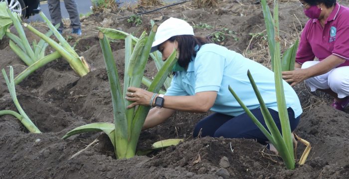 Hal ini tentunya akan berpengaruh terhadap penyedian pangan yang ada di Kota Bitung. Untuk itu TP-PKK berupaya melakukan penanaman yakni menanam bibit talas, ubi jalar dan pemeliharaan ikan lele di Kebun PKK Kecamatan Matuari.