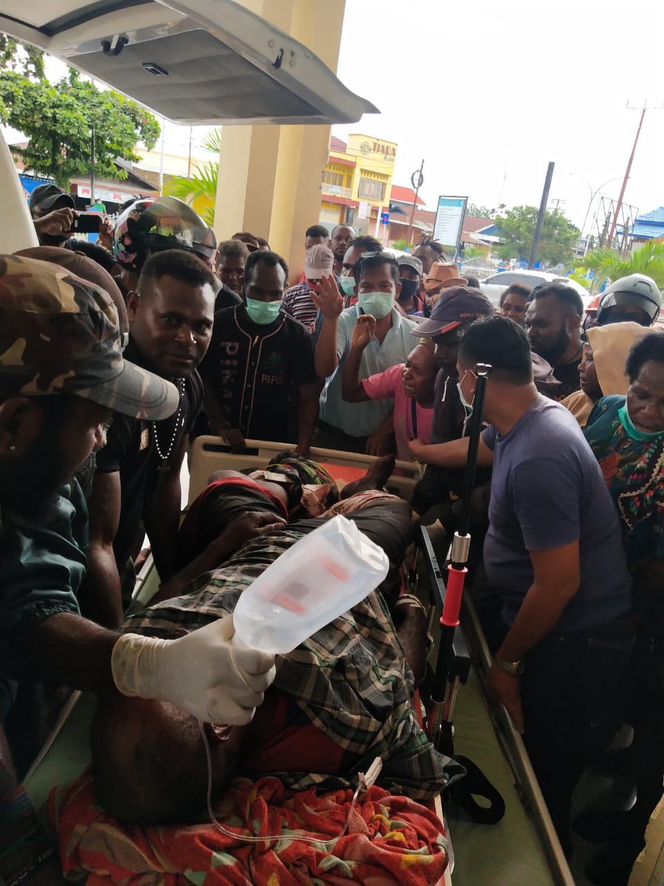 Kemudian personel Ops Nemangkawi bersama Polres Intan Jaya mengevakuasi korban ke Nabire dengan menggunakan pesawat Smart Air dari Bandara Sugapa, Kabupaten Intan Jaya.