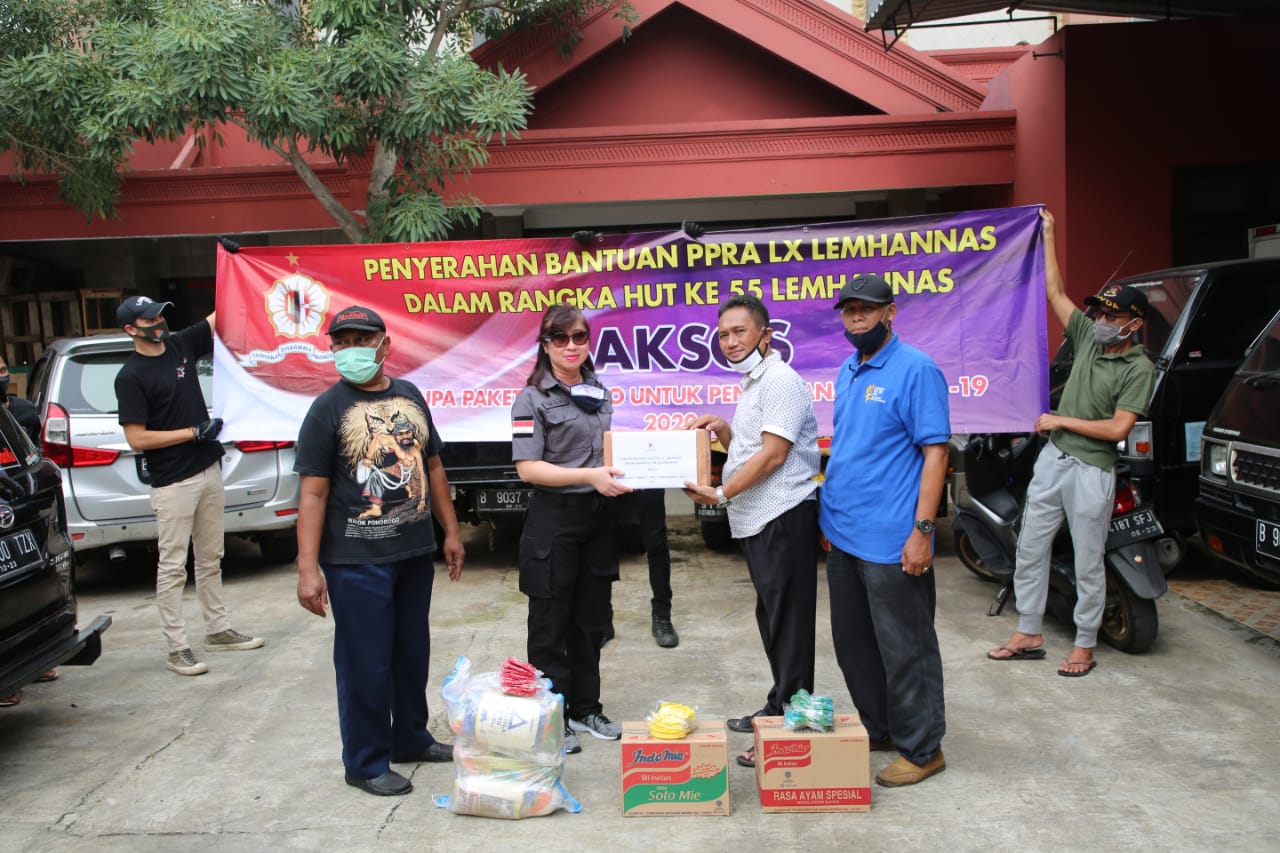 INAnews.co.id, Jakarta – Dalam rangka Hari Ulang Tahun (HUT) ke 55, PPRA LX Lembaga Ketahanan Nasional (LEMHANNAS) Republik Indonesia ikut serta memberikan bantuan sosial (bansos) sembako kepada masyarakat terdampak akibat Covid-19, khususnya kepada warga RW 05 Kelurahan Ragunan, Pasar Minggu, Jakarta Selatan, Sabtu (9/5/2020).