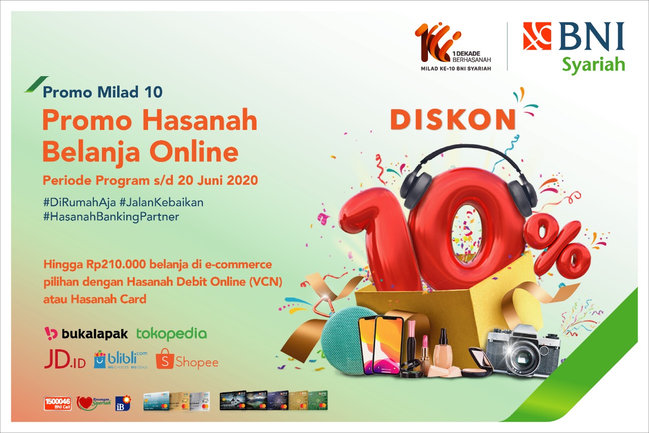 Untuk info promo Milad 10 E-Commerce dapat cek di https://bit.ly/promomilad10bnisyariah