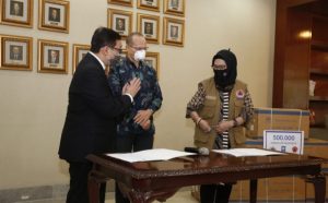Perwakilan UNDP Indonesia menyampaikan bahwa penyaluran bantuan berupa masker medis ini merupakan sebagian dari program yang dikoordinasikan oleh UNDP untuk penanggulangan pandemi COVID-19 di Indonesia.