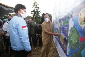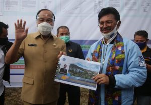 INAnews.co.id Bitung– Menteri Komunikasi dan Informasi (Kominfo) Republik Indonesia Johnny G Plate SE yang di dampingi Wali Kota Bitung Maximilian J Lomban (MJL), kunjungi lokasi yang akan di jadikan program palapa ring, akses internet, dan BTS di perkebunan Waleleng Kelurahan Pinokalan, Kecamatan Ranowulu, Kota Bitung, Selasa 28 Juli 2020.