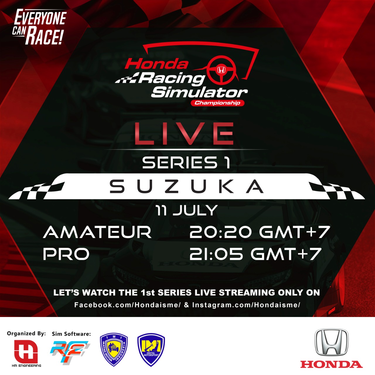 Seluruh seri dari balap virtual HRSC dapat disaksikan secara langsung melalui akun YouTube dan Facebook @hondaisme pada hari dan tanggal yang telah ditentukan. Untuk informasi lebih lanjut, kunjungi website www.honda-indonesia.com dan ikuti Instagram, Facebook dan Twitter @Hondaisme.