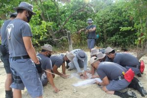Kapten Bakamla Bagus Triyono selaku Kepala Pelatih yang didampingi Lettu Bakamla Tito Adhi, Letda Bakamla Daniel Sibarani, Serma Bakamla Sape’i, dan Serma Bakamla Rizki Setiawan, memberikan materi tentang teknik pelaksanaan renang malam. Tidak seperti kegiatan renang pada umumnya yang dilakukan saat matahari terbit, renang malam memiliki tantangan tersendiri. Terlebih dengan jarak tempuh sepanjang 300 meter, kegiatan ini juga digunakan sebagai salah satu media infiltrasi/penyusupan ke daerah sasaran musuh.