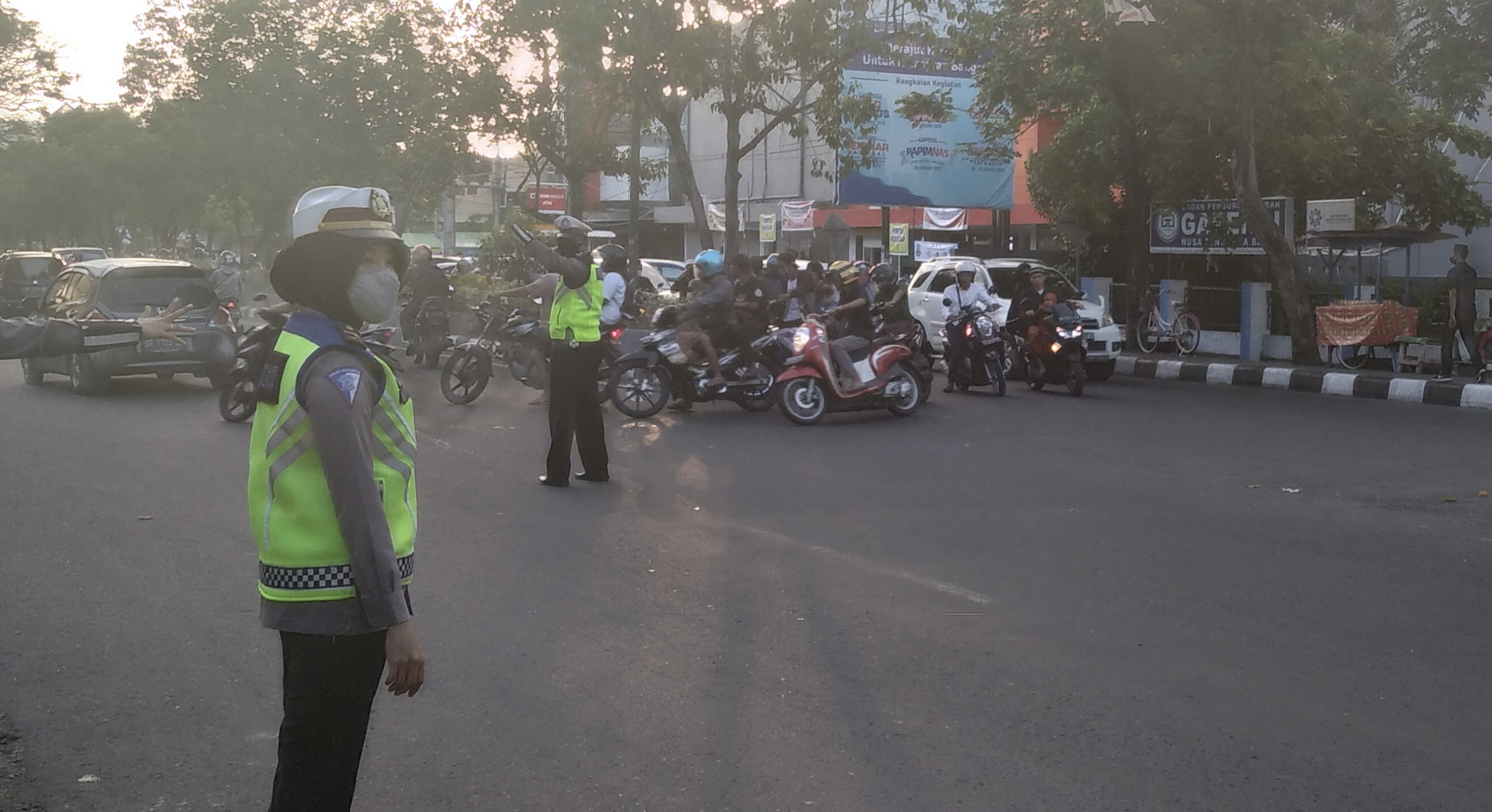 “Selain pengaturan lalu lintas, kita juga menghimbau para pengendara agar menggunakan masker,” ujarnya.