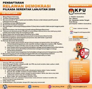 INAnews.co.id Bitung– Komisi Pemilihan Umum (KPU) Kota Bitung kini membuka pendaftaran bagi masyarakat yang ingin menjadi Relawan Demokrasi, Rabu 19 Agustus 2020.