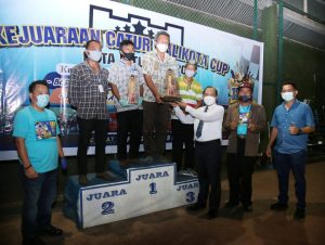 Benyamin pun melanjutkan dengan membacakan Pemenang lomba untuk kategori beregu yaitu, juara 1 PESONA, juara 2 DISPORA, juara 3 PDAM. Sementara untuk kategori perorangan umum, juara 1 Servi Kaunang, juara 2 Nelson Sagune dan juara 3 Zainudin MA.