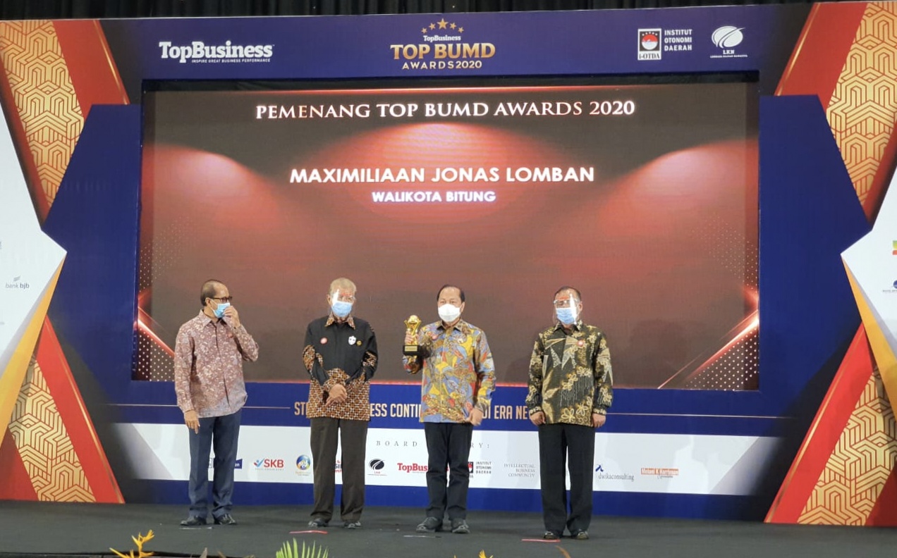 INAnews.co.id Bitung- Wali Kota Maximiliaan J Lomban (MJL) terus mengukir prestasi serta membawa harum nama Kota Bitung di tingkat Nasional, Kali ini MJL membawa pulang penghargaan Top BUMD Awards 2020, yang dilaksanakan di Hotel Sultan Jakarta, Kamis 27 Agustus 2020.