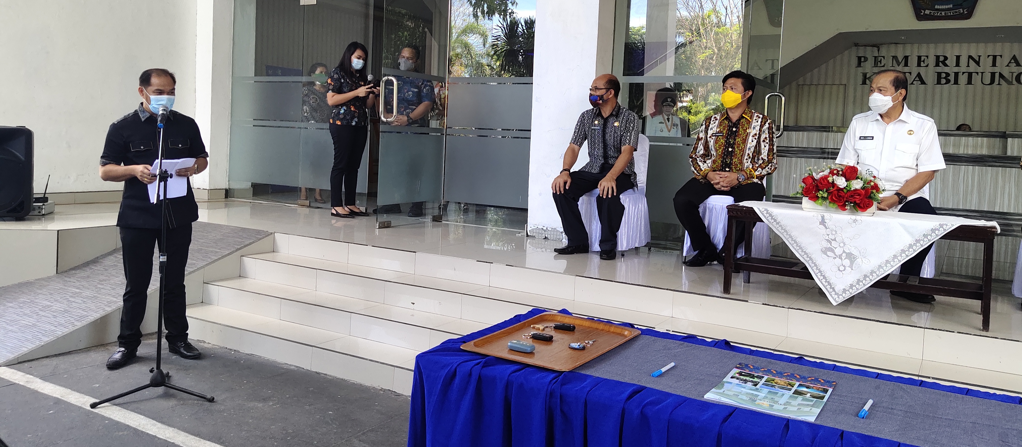 INAnews.co.id Bitung– Hari ini Wali Kota Maximiliaan J Lomban menyerahkan aset Pemerintah Kota Bitung berupa, 1 unit Rumah Jabatan, 1unit Kijang Inova nomor Polisi DB 1 C, 1 unit Honda Civic dengan nomor Polisi DB 25 C, hal ini di sampaikan Kepala Bagian Umum Theo Rorong dalam laporannya yang bertempat di Lobi Kantor Wali Kota Bitung, Kamis 24 September 2020.