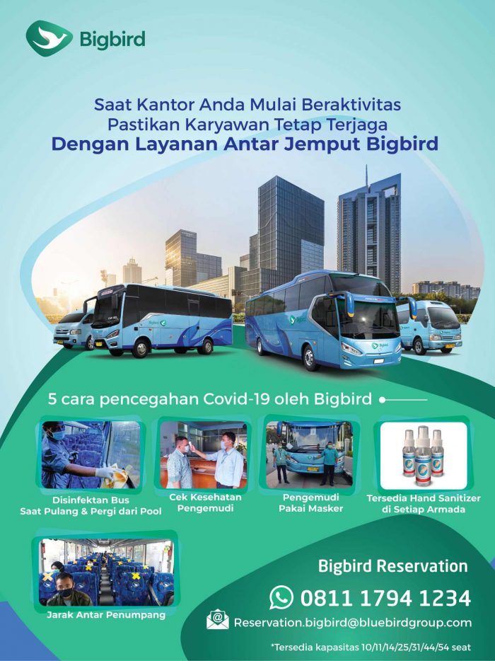 Dengan penerapan layanan shuttle yang dilengkapi standar prosedur kesehatan ketat, kami sangat senang telah mendapatkan kepercayaan dari berbagai perusahaan di layanan ini. Semoga ke depannya layanan antar jemput karyawan dengan Bigbird ini dapat terus menjadi solusi bagi perusahaan yang membutuhkan layanan antar jemput karyawan aman, nyaman dan terpercaya.” tambahnya.
