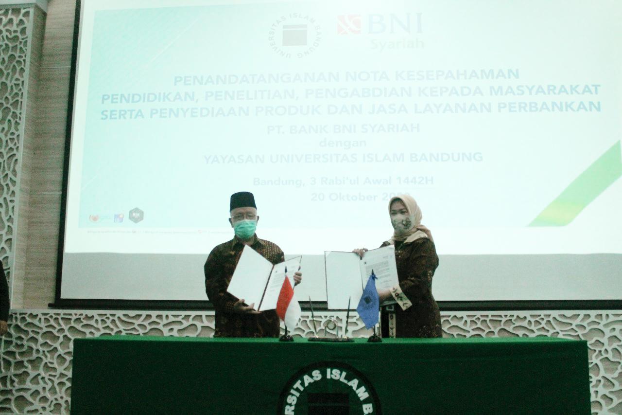 Kerjasama BNI Syariah dengan Yayasan Universitas Islam Bandung (UNISBA) terkait tiga hal yaitu Nota Kesepahaman Penyediaan Produk dan Jasa Layanan Perbankan.
