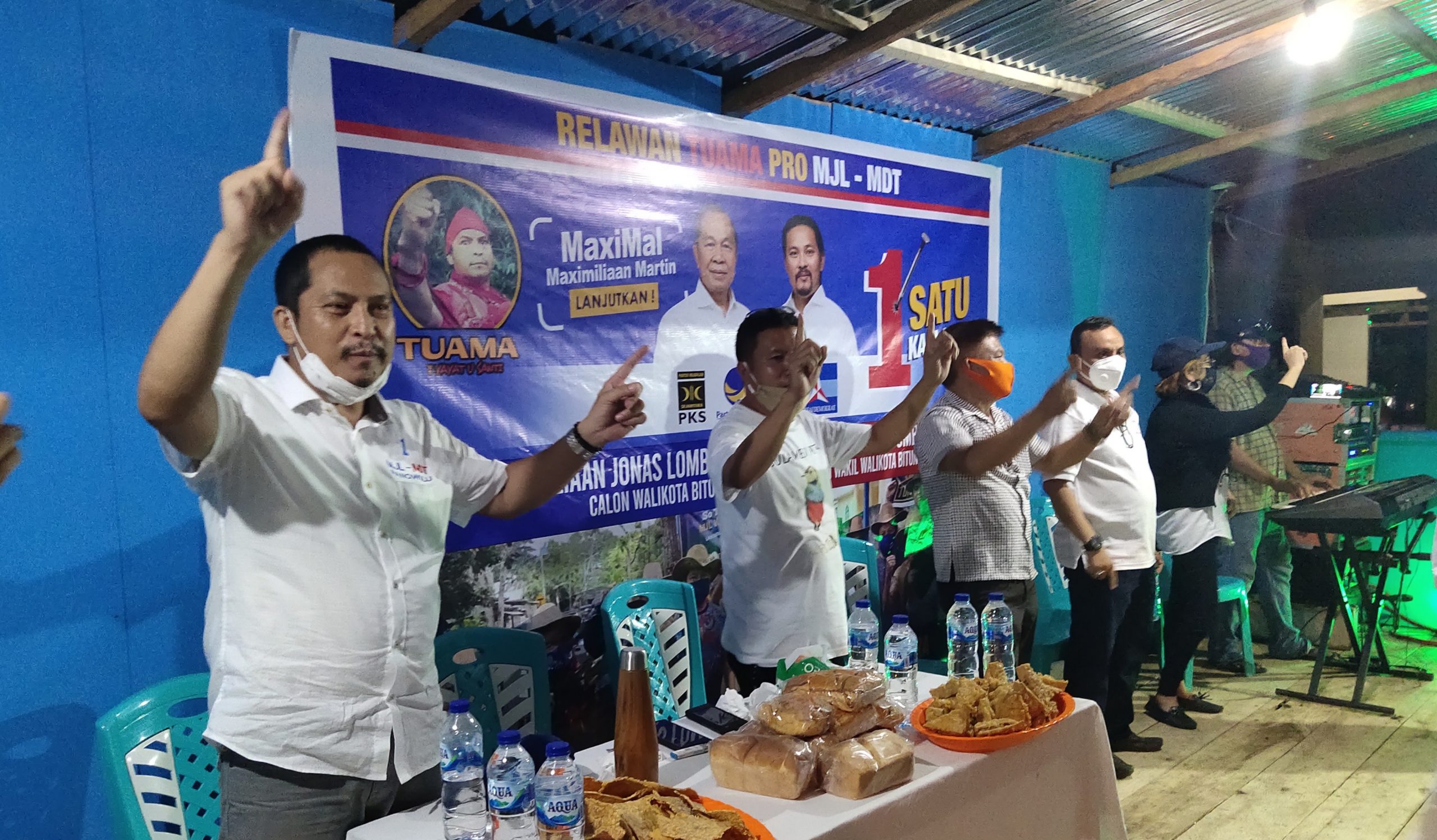 INAnews.co.id Bitung– Pasangan nomor urut 1 Maximiliaan Jonas Lomban dan Martin Daniel Tumbelaka (MJL-MDT) yang diusung Partai Nasdem, Partai PKPI dan Partai Demokrat serta didukung Partai PKS dan Partai Berkarya, menyelenggarakan kampanye blusukan di Kelurahan Pinokalan, Kecamatan Ranowulu, Kota Bitung, Selasa 20 Oktober 2020.