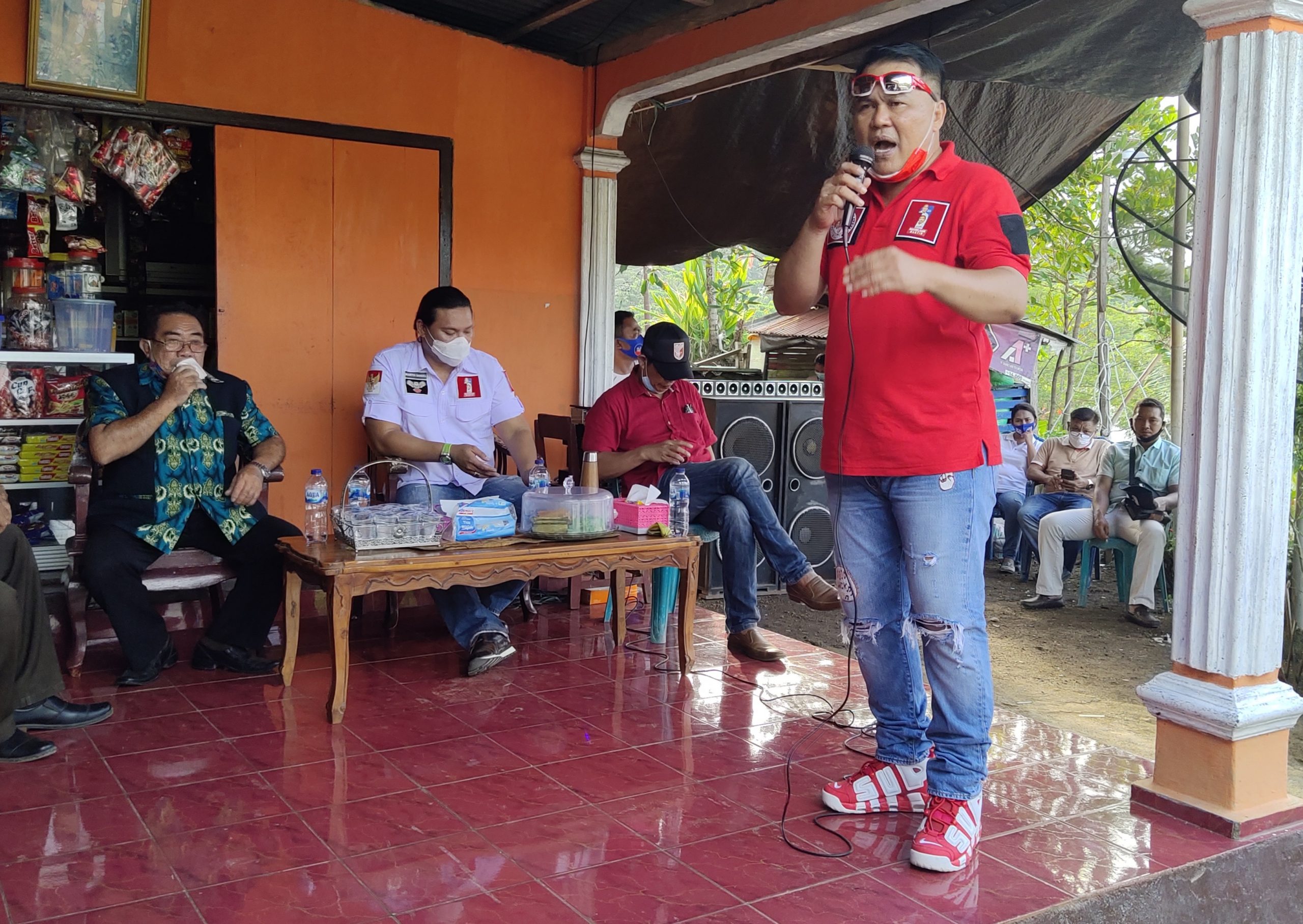 “Pada saat ini kami akan mengklarifikasi apa yang sedang isu-isu yang dimainkan pihak lain untuk menjatuhkan pak MJL, dan ada juga yang mengatakan kepada masyarakat kalau mereka menggantung bendera warna biru status PKHnya akan dihilangkan, dan pada saat ini saya sampaikan itu tidak benar karena yang berhak menghapus atau mengganti nama penerima PKH adalah dari kementerian”, tegas Gumolung.