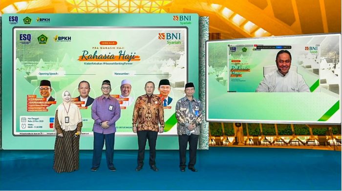 Dalam webinar yang diikuti lebih dari 1600 peserta hadir Direktur Pengelolaan Dana Haji & SIHDU Kementerian Agama RI, Maman Saefullah; Anggota Badan Pelaksana Bidang Keuangan & Manajemen Risiko BPKH, Acep Riana Jayaprawira; Wakil Ketua Forum Komunikasi Kelompok Bimbingan Ibadah Haji & Umroh (FK-KBIHU), H. E. Sunidja; Motivator dan CEO ESQ Leadership Center, Ary Ginanjar Agustian; SEVP Bisnis SME dan Komersial BNI Syariah, Babas Bastaman; dan Pemimpin Divisi Haji dan Umroh BNI Syariah, Endang Rosawati.