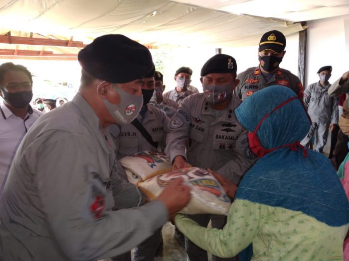 Kepala Kantor Kamla Zona Maritim Timur Laksma Bakamla Arif Sumartono, S.Sos., M.Si (Han) memimpin langsung pendistribusian Bansos ini dengan jumlah yang diberikan sebanyak 549 paket bantuan bahan pokok (sembako), 150 Alat Pelindung Diri (APD), 150 kacamata pelindung, 40 pelindung sepatu, 400 paket Rapid Test Antigen, dan 1353 masker.