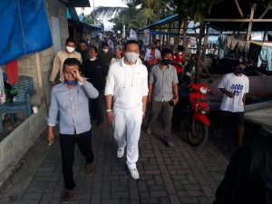INAnews.co.id Bitung– Calon Wakil Wali Kota nomor urut 1 Marthin D Tumbelaka (MDT), melakukan blusukan di Kampung Nelayan Candi, Kecamatan Maesa, Warga Kampung tersebut dikejutkan dengan kedatangan sang idola mereka, seketika semua Warga setempat langsung berdatangan karena moment tersebut sudah sejak lama dirindukan oleh Warga yang ada di Kampung Nelayan, Jumat 20 November 2020.